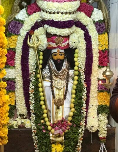 Sri Muneshwara Swamy Temple is devoted to Lord Muneshwara, revered as the family guardian deity in many Shaivite households across India. For over a century, this temple has stood as a pillar of faith in the neighborhood, lovingly maintained by the same family lineage for nearly seven generations. Visitors come here to seek protection, blessings, and a deep connection to this timeless tradition.